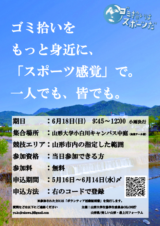 【山大発!】 ごみ拾いはスポーツだin山形大学 参加者募集中です!
